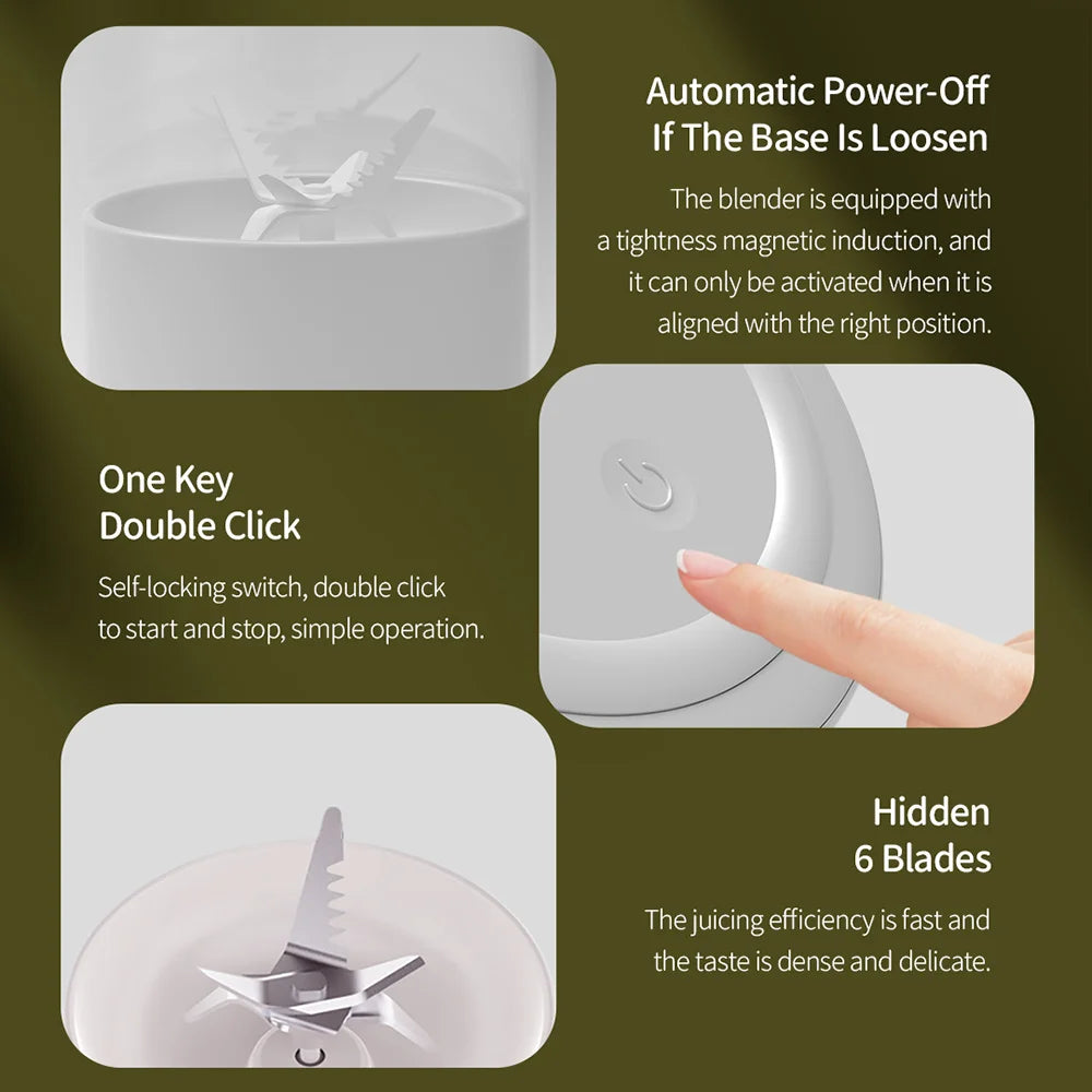 Designed for your busy lifestyle, this lightweight blender fits perfectly in your bag or backpack. USB rechargeable, it lets you blend your favorite drinks anywhere, whether at the gym, on a hike, or even during travel. Convenience meets functionality.
